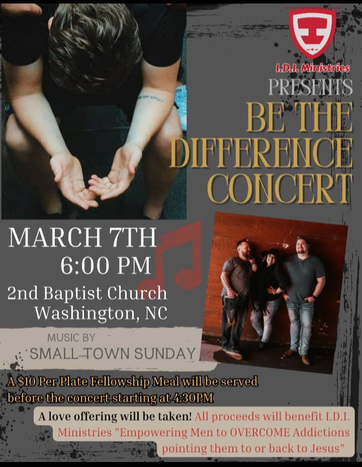 - Saturday, March 7th at Second Baptist Church in Washington, North Carolina